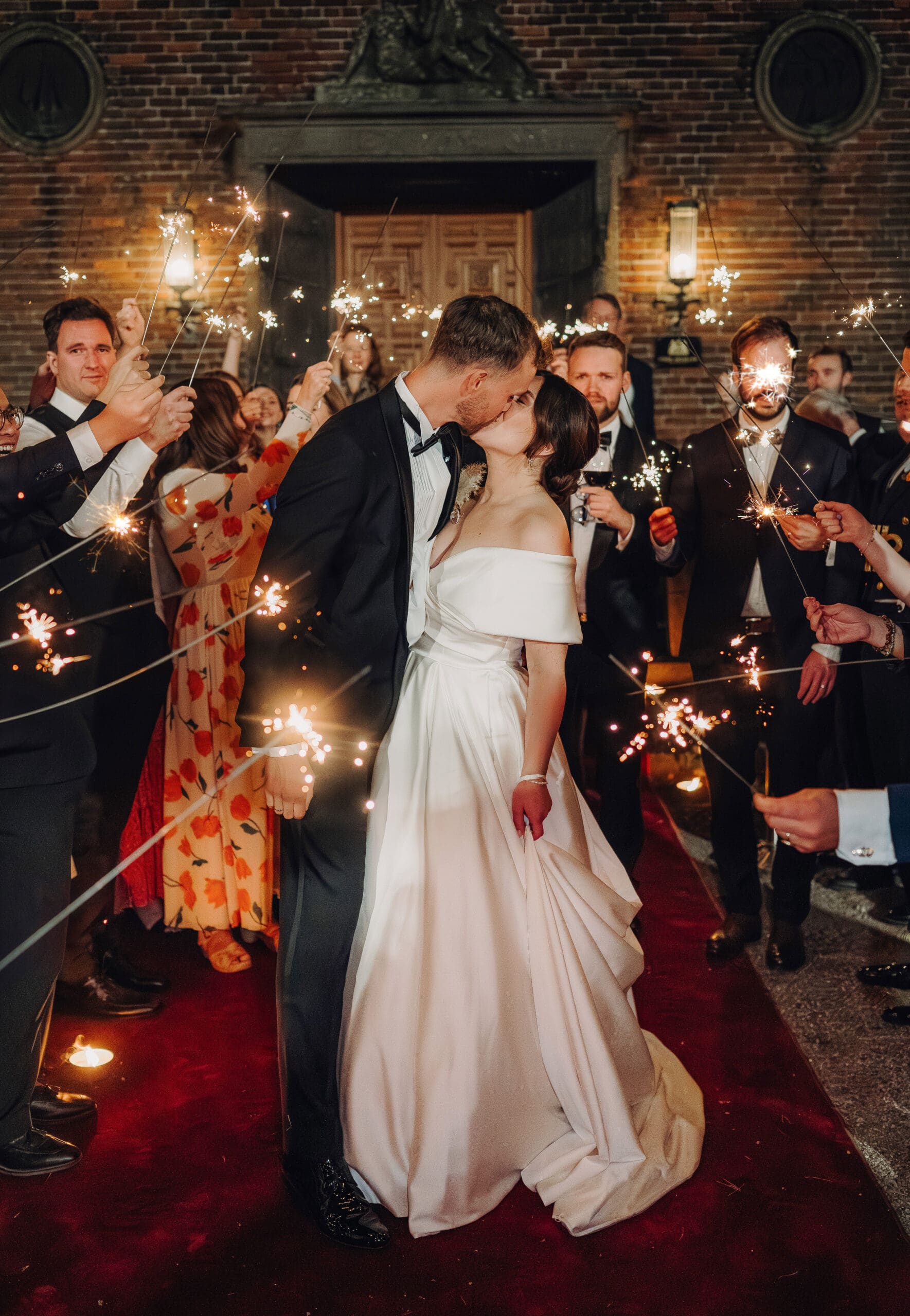 Gå for lange stjerneskudd som brenner lengre, slik at dere får god tid til fotografering. De korte variantene brenner raskt ut. Vanlige stjerneskudd fungerer ofte bedre enn egne “bryllupsvarianter”, og kan med fordel kjøpes rundt nyttår når de er lett tilgjengelige.