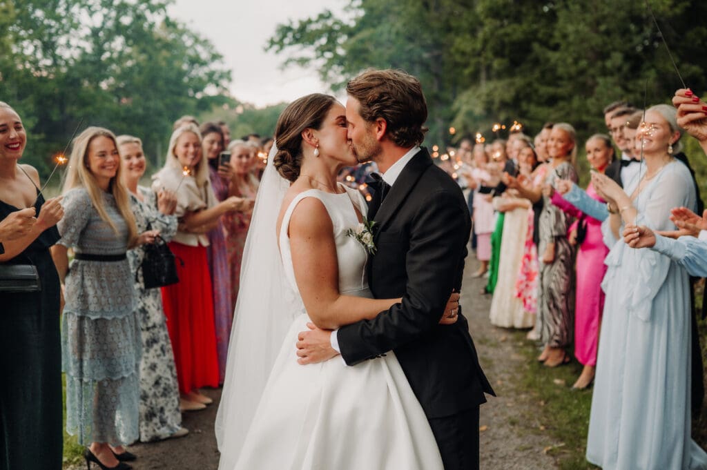 Stjerneskudd er en enkel måte å skape stemningsfulle og unike bryllupsbilder på. Enten dere velger en halvsirkel rundt dere eller en allé dere kan gå gjennom, gir det et fantastisk visuelt uttrykk.